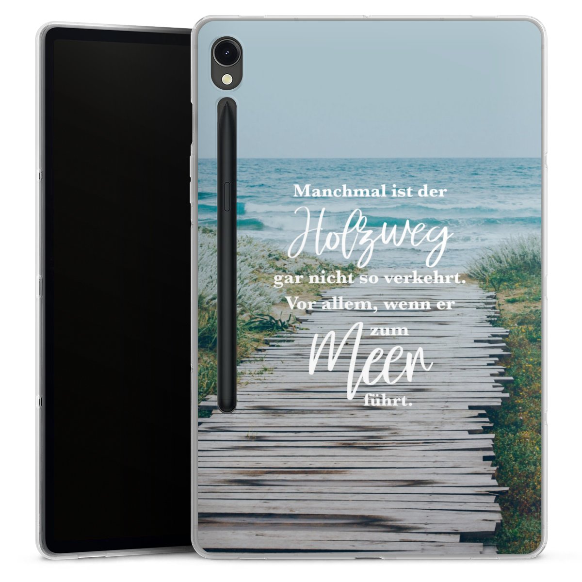 Druckdetails Bei dem Tablet Case nutzen wir das solide Direktdruck-Verfahren. Der Druckbereich umfasst die Rückseite, der Rand bleibt unbedruckt. Die Tablethülle kann sowohl unbedruckt, als auch vollflächig oder partiell bedruckt bestellt werden. Wähle für Dein Design entweder eines unserer exklusiven Shop-Motive, oder werde kreativ und gestalte Dein Wunschdesign zum Beispiel mit Fotos und Overlays selbst.