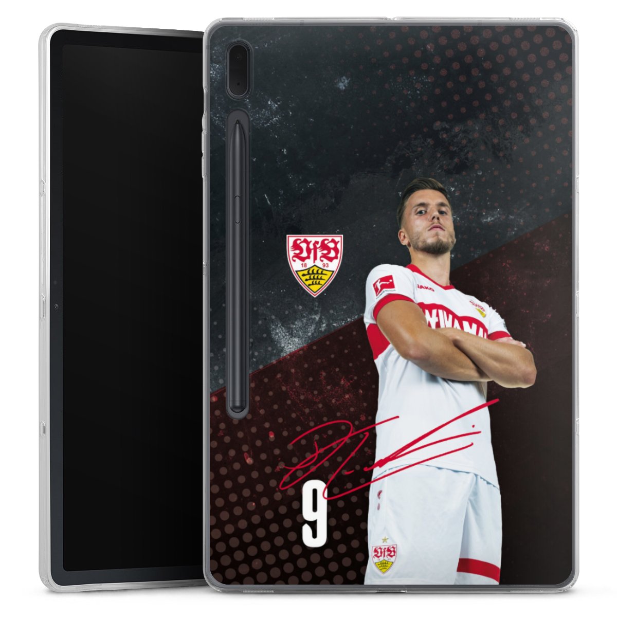 Das Vereinswappen des VfB Stuttgart auf der eigenen Hülle