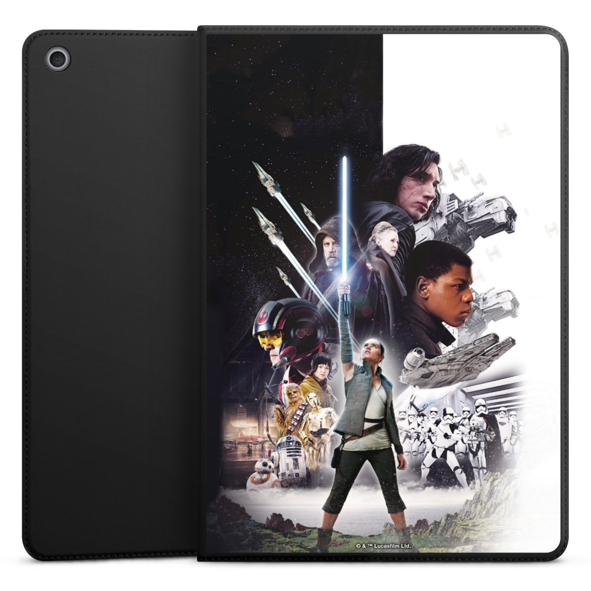 Darth Vader, C3PO, R2D2 und Meister Yoda findest Du in unserem Star Wars Shop auf DeinDesign. Natürlich gibt es auch Star Wars Handyhüllen mit den legendären Charakteren Luke Skywalker, Prinzessin Leia und Han Solo, den Helden der ersten Saga. Wer jedoch die Hauptfiguren der neuen Star Wars Filme ins Herz geschlossen hat, kann auch Finn und Rey mit ihren mächtigen Waffen auf der Rückseite seines Smartphones haben. Die vielseitigen Schutzhüllen in verschiedenen Ausführungen sind das perfekte Geschenk für alle Star Wars Fans, die ihrem Smartphone eine individuelle Note verleihen wollen.