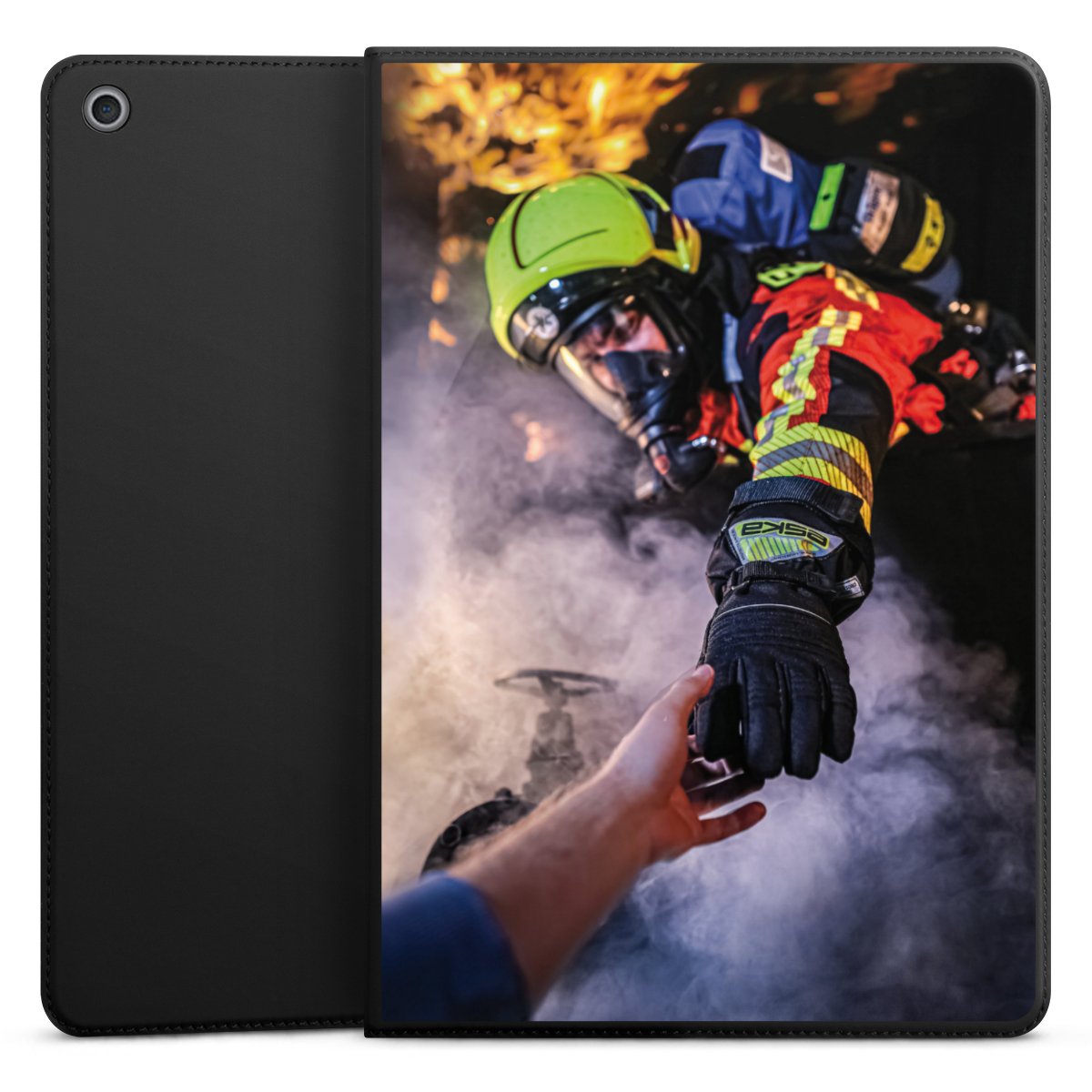 Feuerwehrmann greift nach der Hand