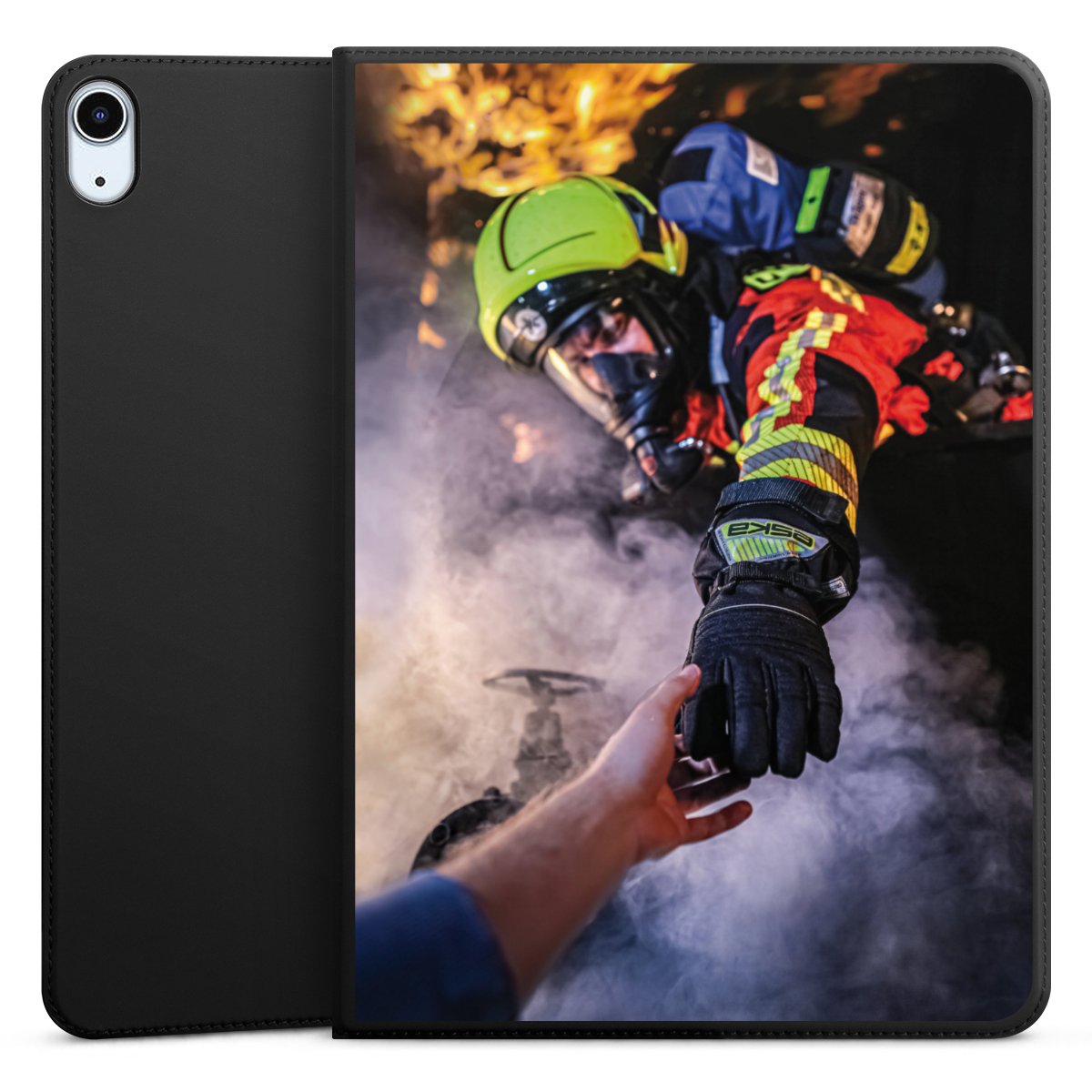 Feuerwehrmann greift nach der Hand