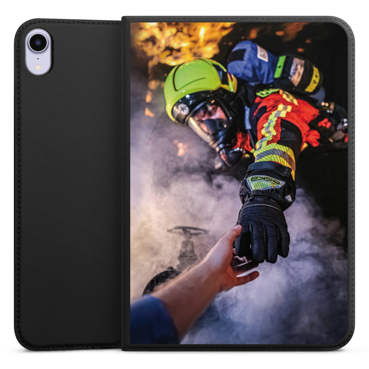 Feuerwehrmann greift nach der Hand