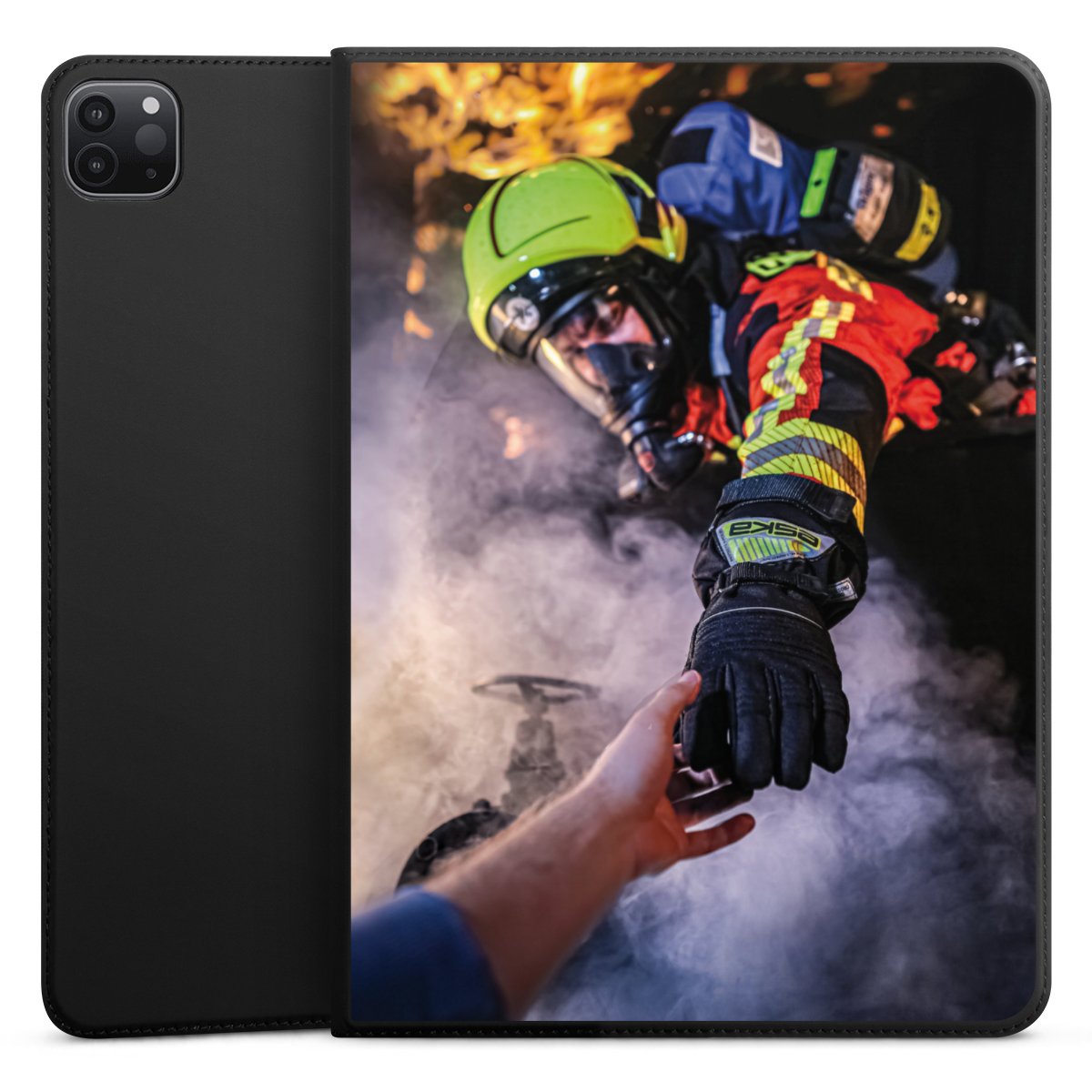 Feuerwehrmann greift nach der Hand