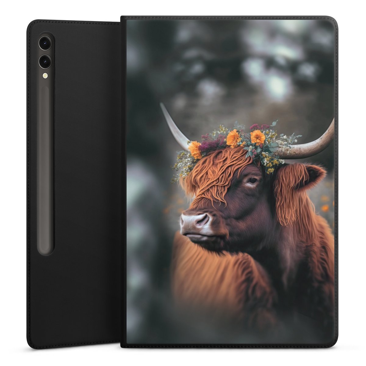 Hochland Rind mit Blumen mit KI