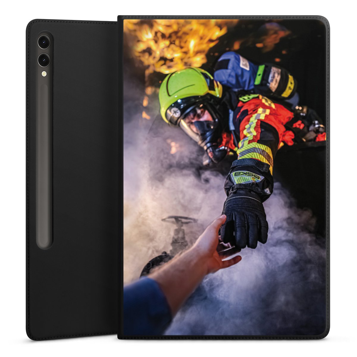 Feuerwehrmann greift nach der Hand