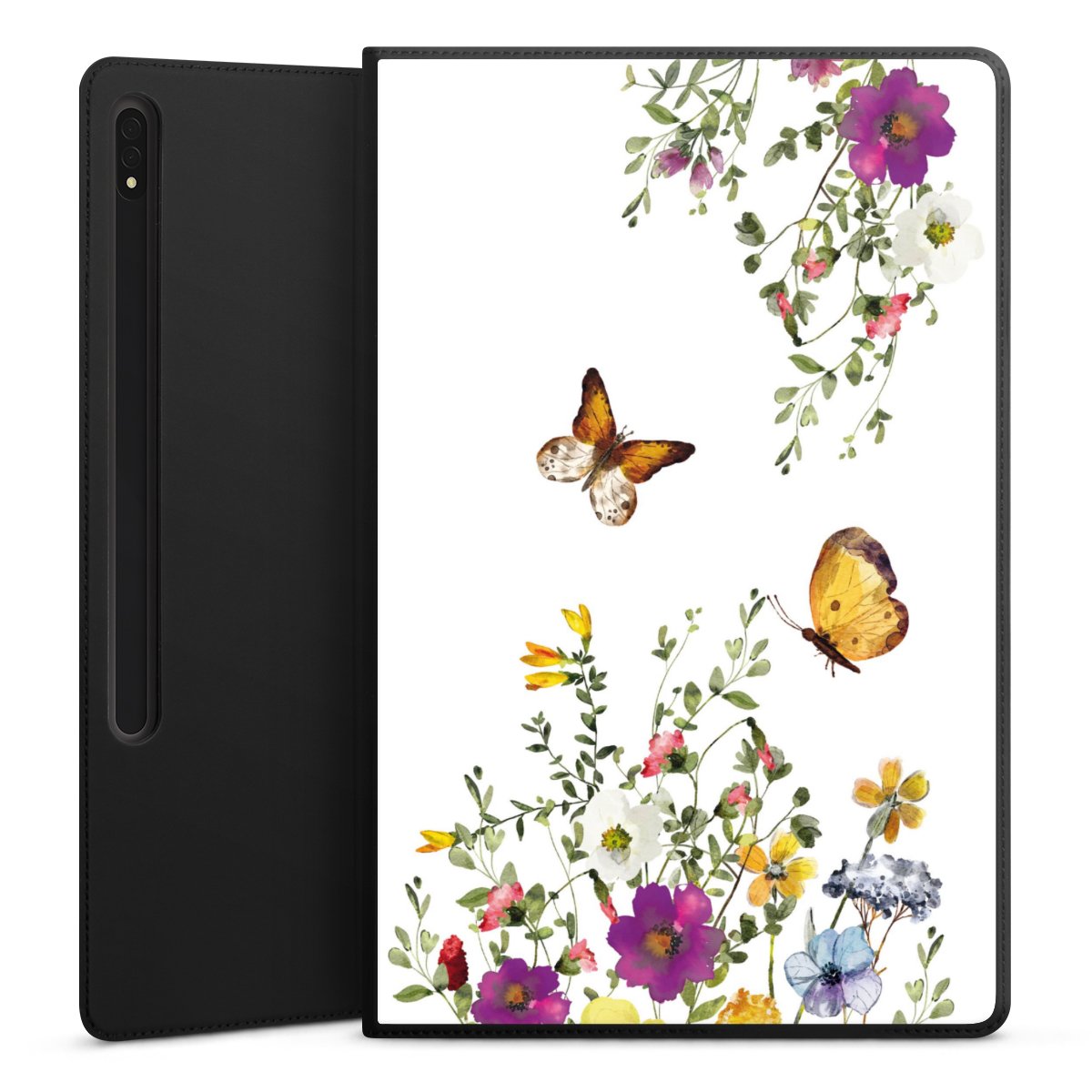 Schmetterlinge und bunte Blumen