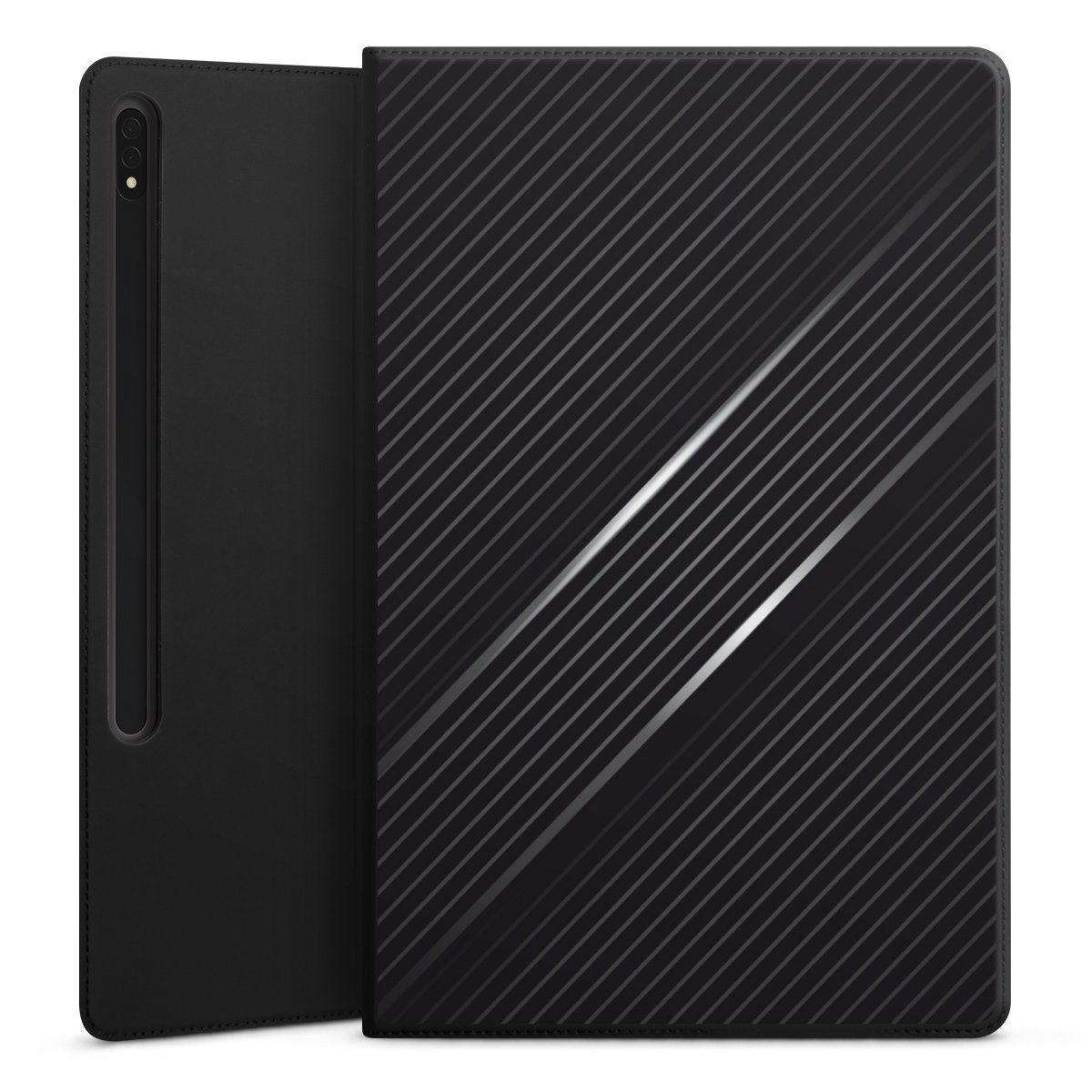 Mit wenigen Handgriffen machst Du aus diesem Flip-Cover einen höhenverstellbaren Tabletständer. Dank der drei Halterillen findest Du immer den richtigen Winkel für den perfekten Blick.