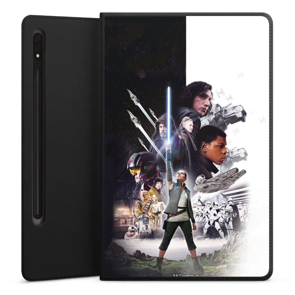 Darth Vader, C3PO, R2D2 und Meister Yoda findest Du in unserem Star Wars Shop auf DeinDesign. Natürlich gibt es auch Star Wars Handyhüllen mit den legendären Charakteren Luke Skywalker, Prinzessin Leia und Han Solo, den Helden der ersten Saga. Wer jedoch die Hauptfiguren der neuen Star Wars Filme ins Herz geschlossen hat, kann auch Finn und Rey mit ihren mächtigen Waffen auf der Rückseite seines Smartphones haben. Die vielseitigen Schutzhüllen in verschiedenen Ausführungen sind das perfekte Geschenk für alle Star Wars Fans, die ihrem Smartphone eine individuelle Note verleihen wollen.