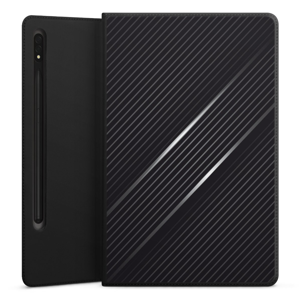 Mit wenigen Handgriffen machst Du aus diesem Flip-Cover einen höhenverstellbaren Tabletständer. Dank der drei Halterillen findest Du immer den richtigen Winkel für den perfekten Blick.