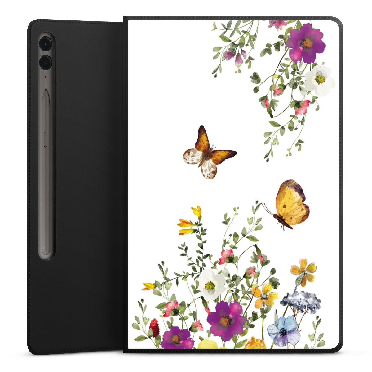 Schmetterlinge und bunte Blumen