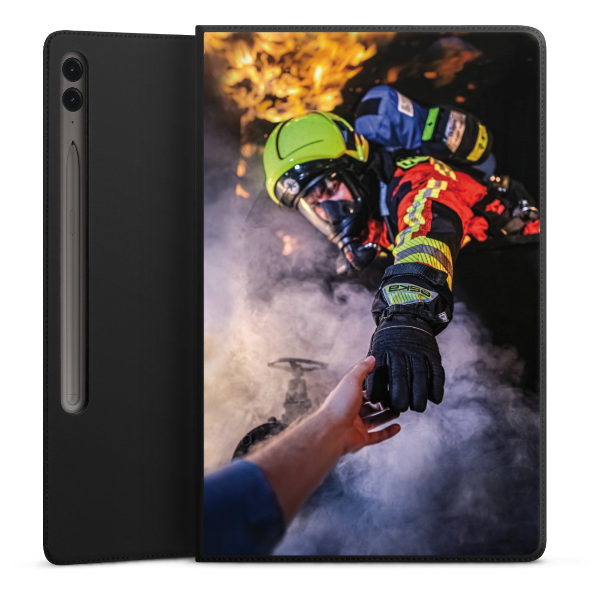 Feuerwehrmann greift nach der Hand