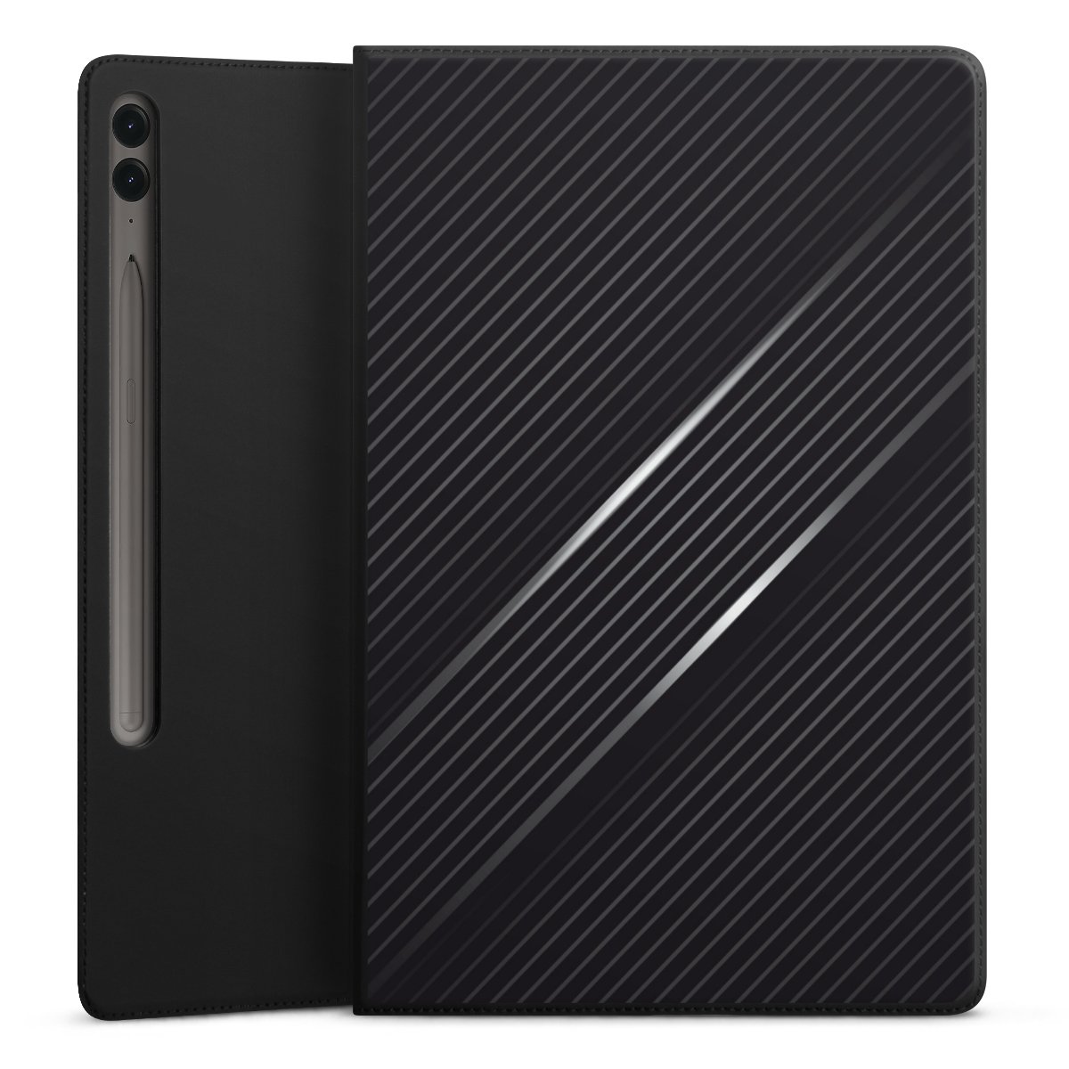 Mit wenigen Handgriffen machst Du aus diesem Flip-Cover einen höhenverstellbaren Tabletständer. Dank der drei Halterillen findest Du immer den richtigen Winkel für den perfekten Blick.