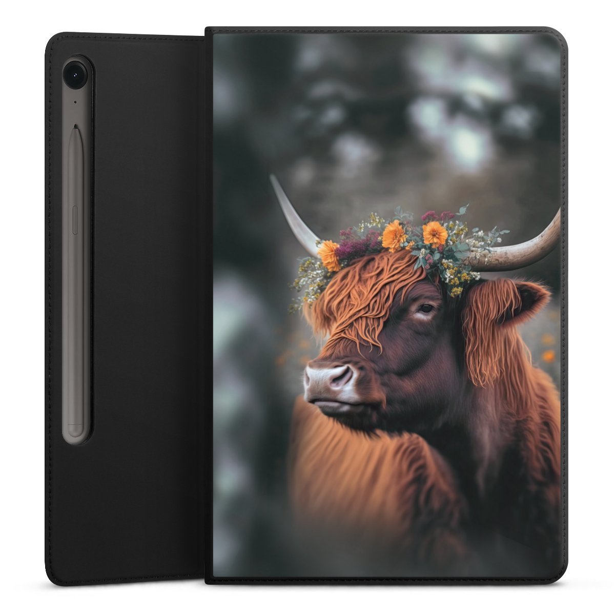 Hochland Rind mit Blumen mit KI