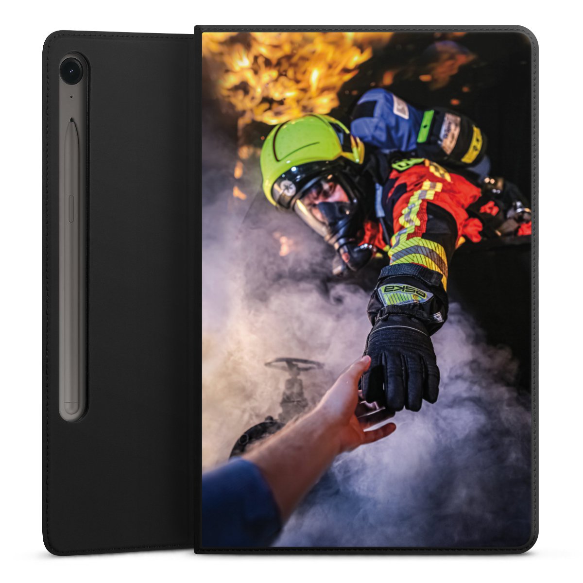 Feuerwehrmann greift nach der Hand