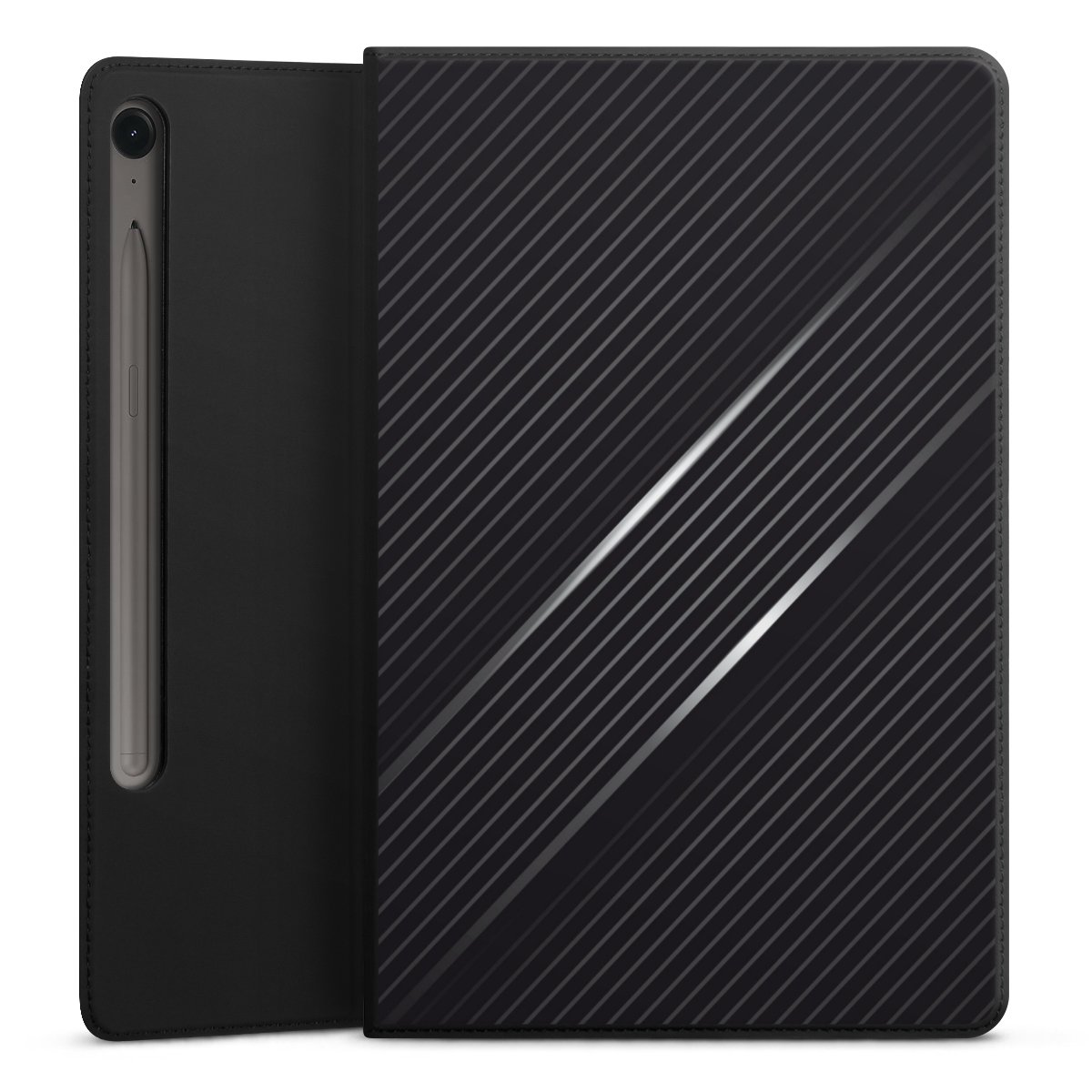 Mit wenigen Handgriffen machst Du aus diesem Flip-Cover einen höhenverstellbaren Tabletständer. Dank der drei Halterillen findest Du immer den richtigen Winkel für den perfekten Blick.