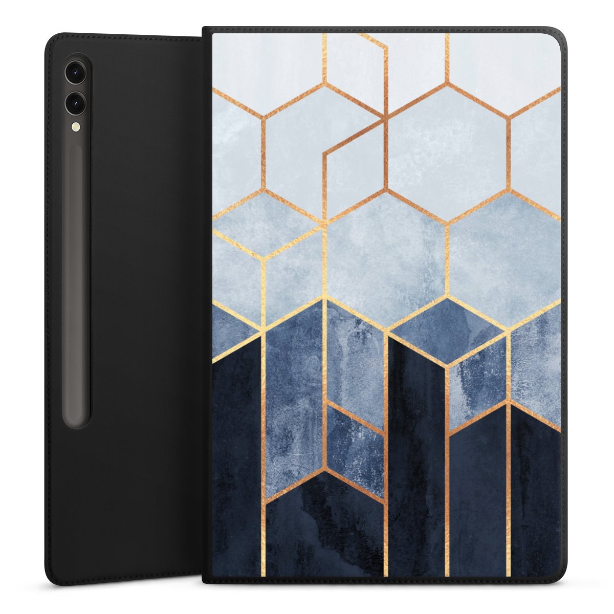 Blauer Farbverlauf Sechsecke Golddruck