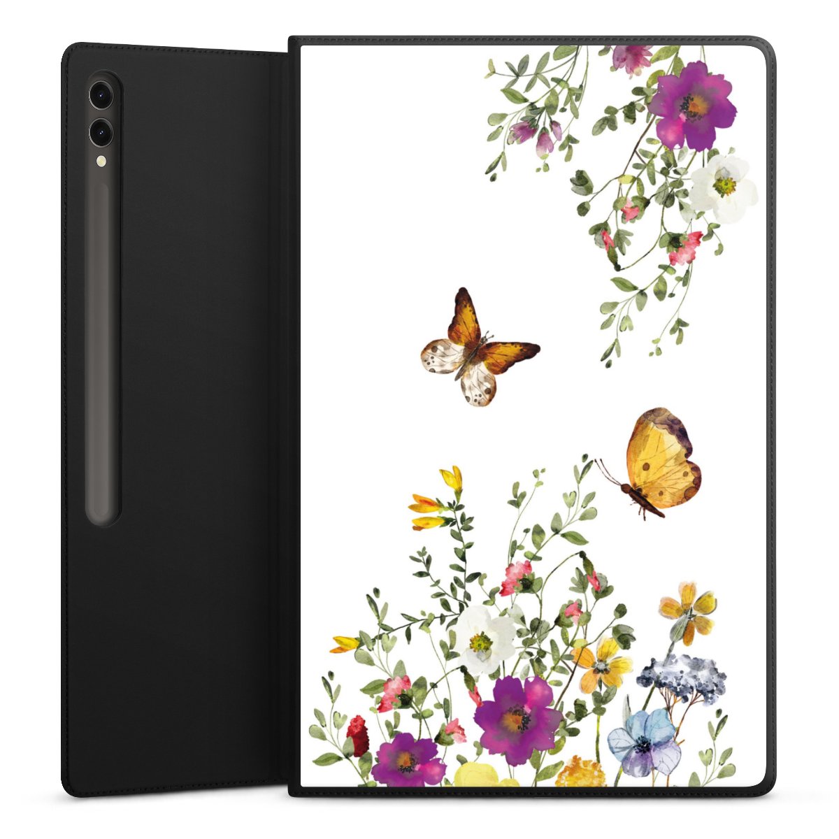Schmetterlinge und bunte Blumen