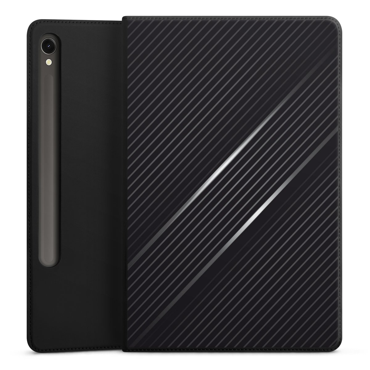 Mit wenigen Handgriffen machst Du aus diesem Flip-Cover einen höhenverstellbaren Tabletständer. Dank der drei Halterillen findest Du immer den richtigen Winkel für den perfekten Blick.